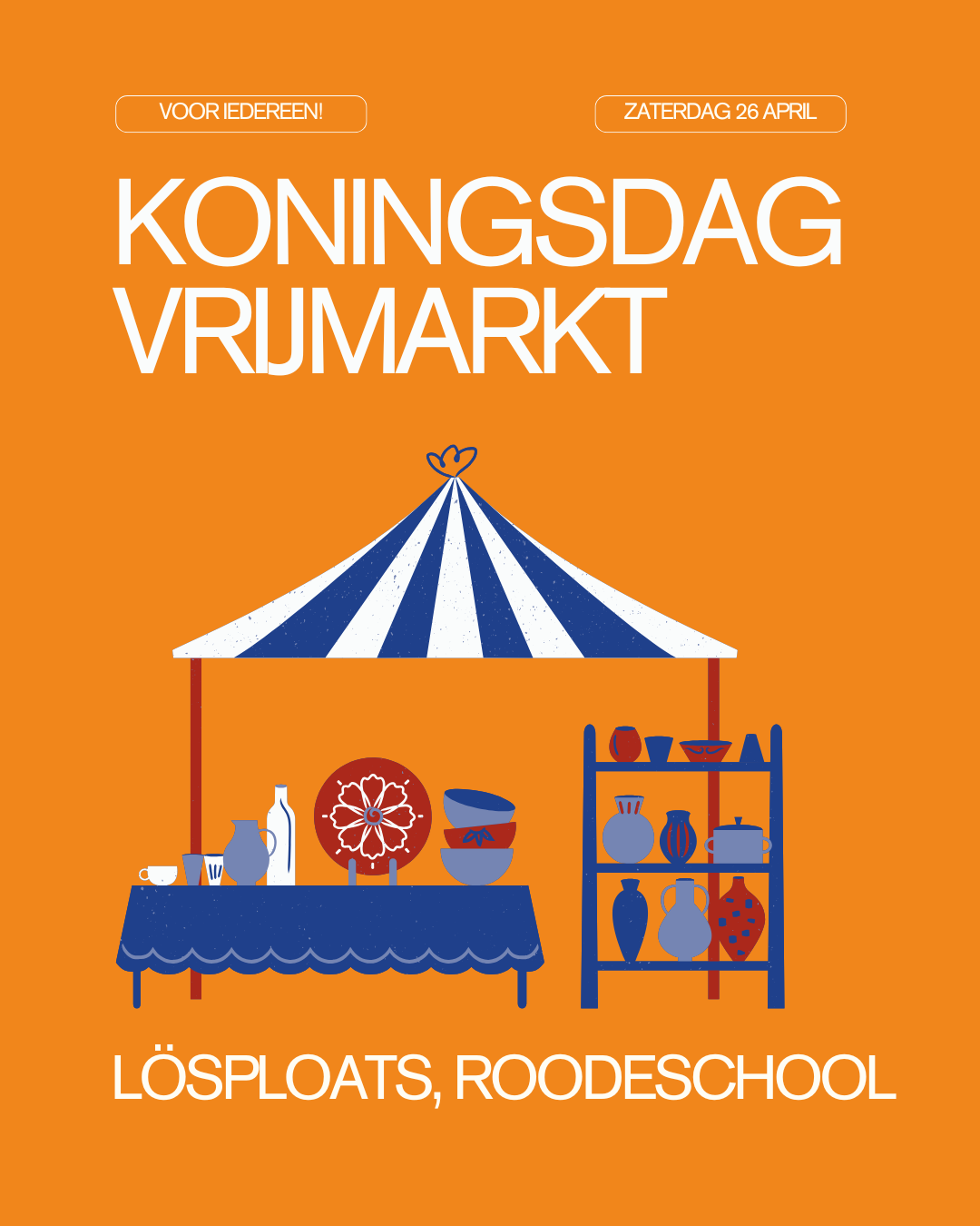 Zaterdag 26 april organiseren we weer een gezellige vrijmarkt op de Lösploats in Roodeschool. Met muziek, lekker eten en natuurlijk veel leuke kraampjes!